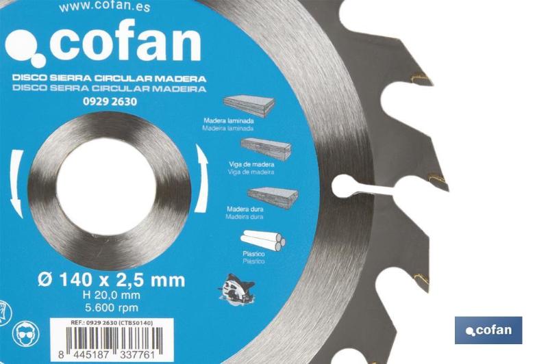 COFAN 09292635 - DISCO DE SIERRA CIRCULAR PARA MADERA Ø180 X 2,5 X 30 MM, 24
