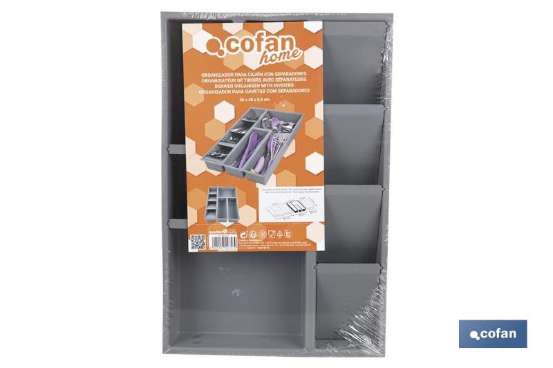 COFAN 44000017 - ORGANIZADOR PARA CAJON CON SEPARADORES COLOR GRIS 30 X 45 X