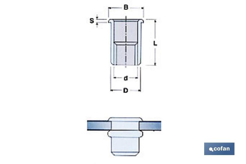 COFAN 07540003 - TUERCAS REMACHABLES ALUMINIO ANCHA M-3